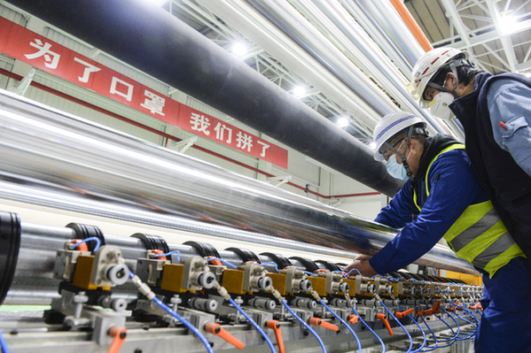 “國(guó)家需要什么就生產(chǎn)什么,人民期待什么就奉獻(xiàn)什么。一切為了國(guó)家的需要和人民的期待。這是中國(guó)石化集團(tuán)公司黨組在疫情防控阻擊戰(zhàn)中確定的原則。”呂大鵬告訴記者,口罩作為抗擊疫情最重要的防護(hù)用品,隨著疫情突發(fā)需求量大增。特別是用以生產(chǎn)口罩的熔噴布,國(guó)內(nèi)產(chǎn)能原本不足,新增產(chǎn)能周期長(zhǎng)、投資大,趕不上下游口罩機(jī)生產(chǎn)線的增加,一時(shí)間熔噴布價(jià)格飛漲且供不應(yīng)求,成為產(chǎn)業(yè)鏈條的“瓶頸”。