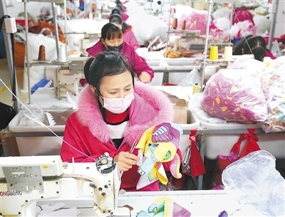 安徽省合肥市廬江縣采取多項措施促進企業(yè)有序復(fù)工復(fù)產(chǎn),積極組織扶貧車間恢復(fù)生產(chǎn),確保當?shù)刎毨艉娃r(nóng)民穩(wěn)就業(yè)、促增收。圖為4月1日,廬江縣廬城鎮(zhèn)鼎輝玩具公司扶貧車間內(nèi),工人正在趕制出口歐美的玩具訂單。