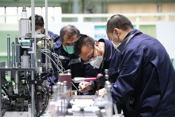 圖為裝配人員聚精會神調試設備。(中國航空制造技術研究院 供圖)