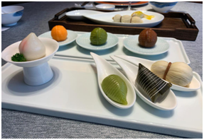 網(wǎng)友最“饞”的還是“一點(diǎn)宴天下”里的點(diǎn)心,包括為2018年首屆進(jìn)博會(huì)歡迎晚宴研發(fā)的“荷韻套點(diǎn)”,為2014年亞信峰會(huì)期間各國(guó)第一夫人定制的“夫人套點(diǎn)”。每套點(diǎn)心里包含多種花樣:有狀似蓮藕、每節(jié)一個(gè)味道的酥點(diǎn),做成錦鯉樣子的鱖魚餃子,寓意長(zhǎng)享福壽的夾心壽桃……個(gè)個(gè)小巧別致,形狀逼真,美的像一幅畫,海派風(fēng)格十足?!熬碌焦撬琛钡狞c(diǎn)心讓主播遲遲不忍下口,在網(wǎng)友再三催促下,才舍得一個(gè)一個(gè)吃下,分享口口驚喜,網(wǎng)友隔屏直呼“舒服了”。