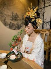 直播中,當(dāng)一桌子“網(wǎng)紅”菜品上桌后,直播間的觀看熱度逐漸升溫?!耙或T紅塵妃子笑,無人知是荔枝來”,蝦肉特制的“妃子笑”讓大家垂涎三尺,看到佳晨吃這道菜,仿佛穿越到唐朝看楊貴妃在品嘗荔枝。而靈感來源于古代文房四寶的“毛筆酥”也引起了網(wǎng)友的關(guān)注,佳晨拿起毛筆,蘸上一口藍(lán)莓醬搭配紅糖的“墨汁”,網(wǎng)友直呼“吃的都是文化啊”。