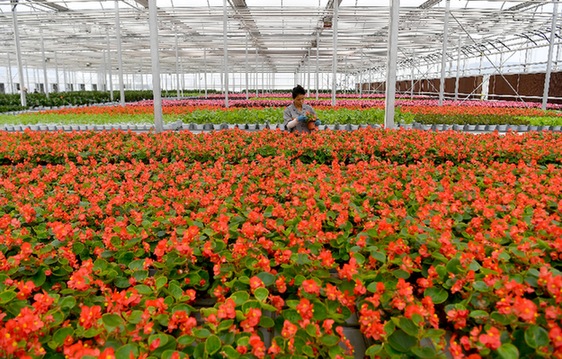 圖為楊凌智慧農(nóng)業(yè)示范園內(nèi),工作人員在管護(hù)溫室花卉。