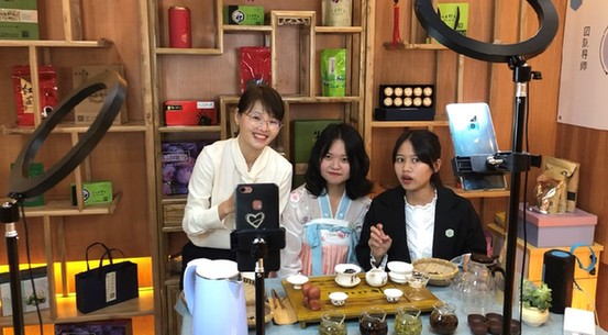 義烏工商職業(yè)技術(shù)學(xué)院創(chuàng)業(yè)學(xué)院老師和阿壩師范學(xué)院學(xué)生在上直播電商課?。ㄙY料照片)