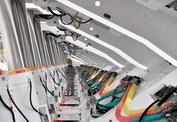 4月10日,世界最大斷面矩形盾構(gòu)機(jī)(寬14.82米*高9.446米)“南湖號”(“中鐵798號”)在中鐵裝備上?;爻晒ο戮€,標(biāo)志著我國矩形盾構(gòu)設(shè)計(jì)制造技術(shù)再次刷新世界紀(jì)錄。資料照片