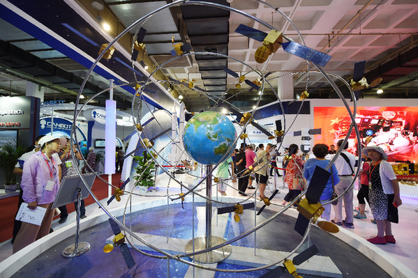 圖為此前參觀者在第二十屆中國北京國際科技產(chǎn)業(yè)博覽會(huì)上參觀展出的北斗衛(wèi)星導(dǎo)航系統(tǒng)模型。記者 鞠煥宗 攝