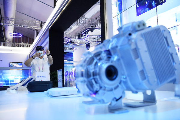 9月15日,2020線上中國(guó)國(guó)際智能產(chǎn)業(yè)博覽會(huì)在重慶開幕。圖為工作人員在智博會(huì)上演示“5G+AR遠(yuǎn)程運(yùn)維技術(shù)”。