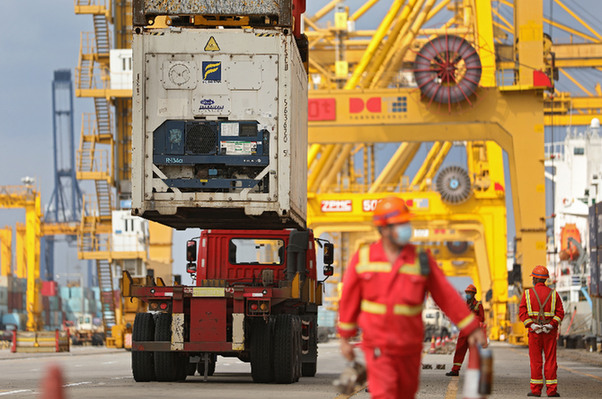 一輛貨車在大連港大連集裝箱碼頭有限公司港口裝載集裝箱。今年以來,遼港集團(tuán)大連港以“完善航線布局,提高吞吐量”為抓手,大力推進(jìn)集裝箱內(nèi)外貿(mào)航線及多品種貨源的開發(fā),多措并舉拓展市場(chǎng)。記者 姚劍鋒 攝