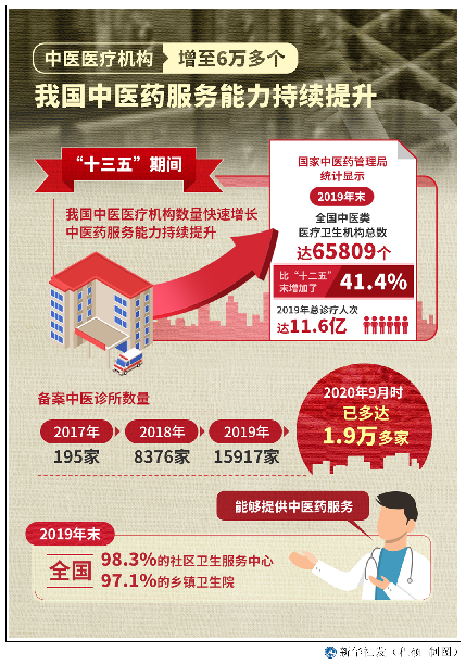 中醫(yī)醫(yī)療機(jī)構(gòu)增至6萬多個 我國中醫(yī)藥服務(wù)能力持續(xù)提升。新華社發(fā) 程碩 制圖