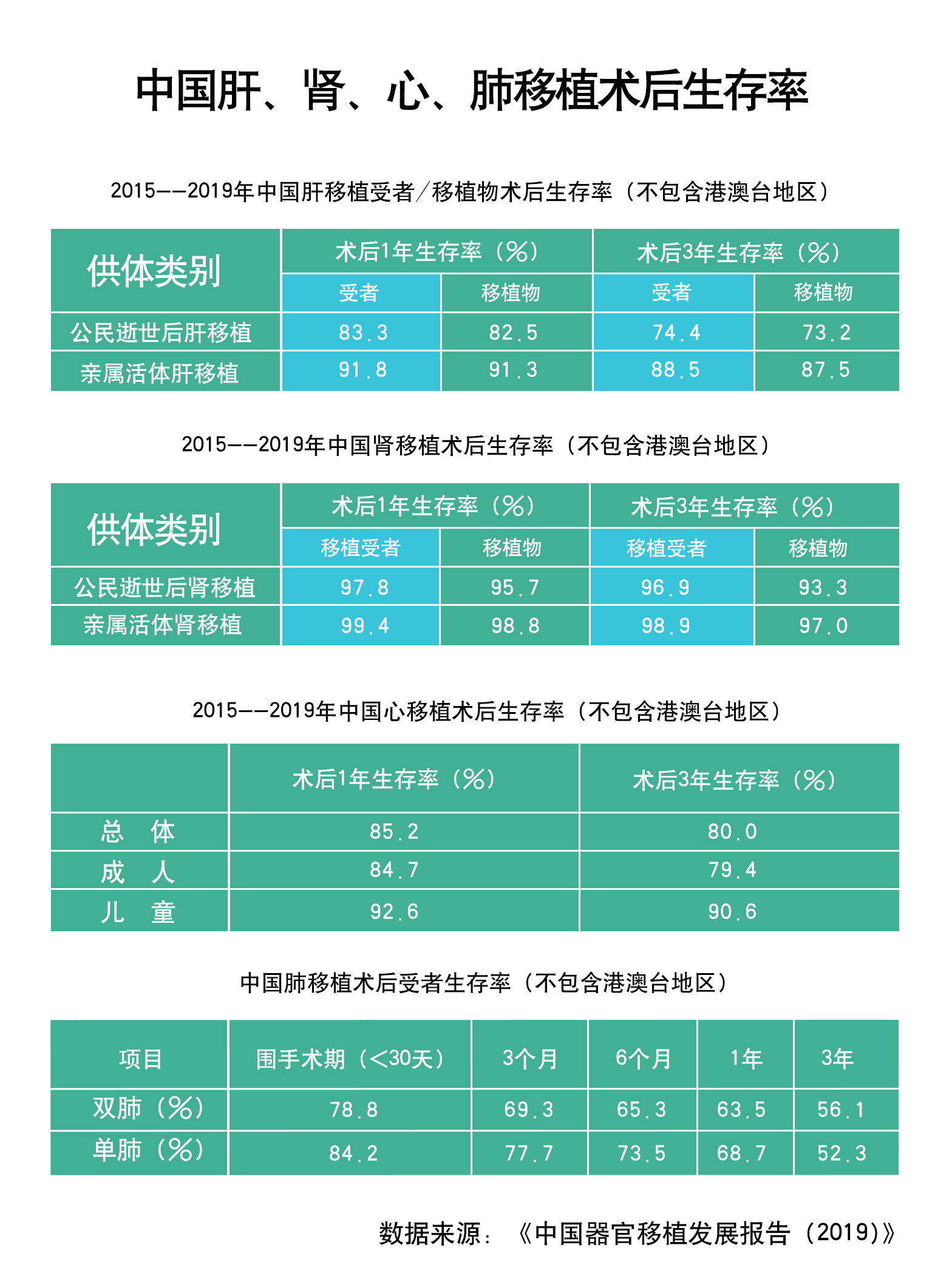 靈丹妙藥難尋就,須得妙手方回春。器官移植因其復(fù)雜程度、風(fēng)險(xiǎn)之大,被譽(yù)為臨床醫(yī)學(xué)技術(shù)“王冠上的明珠”。黃潔夫介紹,5年來,中國器官移植術(shù)后生存率居國際前列。其中,公民逝世后器官捐獻(xiàn)肝移植受者術(shù)后生存率1年達(dá)83.3%,術(shù)后3年達(dá)74.4%;2018年心臟移植術(shù)后1年生存率達(dá)90.8%,高于國際心肺移植學(xué)會公布的85.4%;逝世后器官捐獻(xiàn)腎移植受者術(shù)后3年生存率為96.9%;2019年中國共完成9例兒童肺移植,創(chuàng)國內(nèi)年齡最小的兒童肺移植記錄(不包括港澳臺地區(qū))。