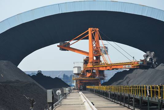 圖為斗輪機(jī)開足馬力進(jìn)行來煤堆卸