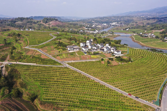 ????渝北區(qū)大盛鎮(zhèn)青龍村通過宜機化改造后的現(xiàn)代化果園。記者 劉潺 攝