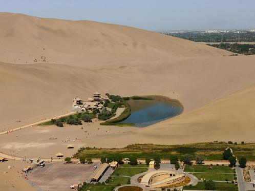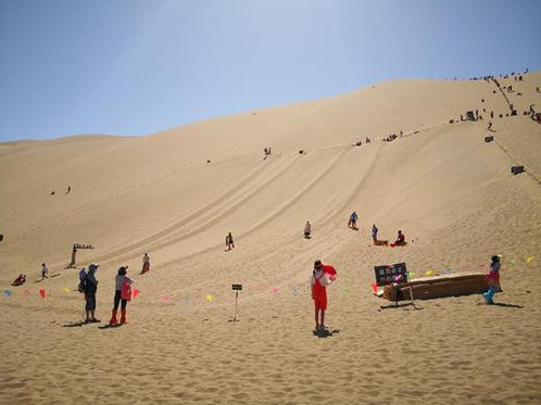 8月6日,游客在甘肅敦煌鳴沙山月牙泉景區(qū)內(nèi)游玩。 受訪者供圖