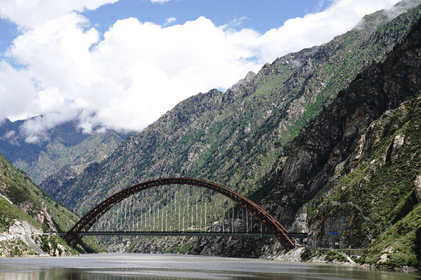 ????藏木雅魯藏布江雙線特大橋全長(zhǎng)525.1米,主拱跨徑430米。記者 劉洪明 攝