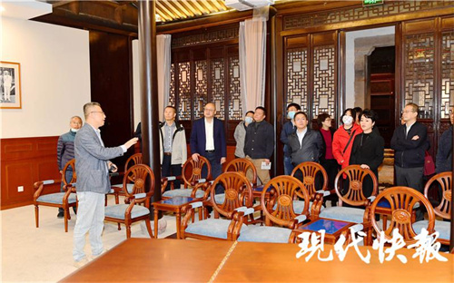 在青果巷文化記憶館,采訪團(tuán)成員們饒有興趣地觀看著動(dòng)態(tài)《康熙南巡圖》和青果巷歷史回顧 AR 短片。這些展覽,以聲光元素為媒,生動(dòng)地再現(xiàn)了古常州的繁華景象和青果巷九巷八宅的老故事。