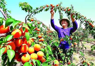 西海固果農(nóng)喜收紅梅杏。光明圖片