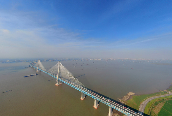 這是2021年8月31日拍攝的滬蘇通長(zhǎng)江公鐵大橋(無(wú)人機(jī)照片)。新華社發(fā)(許叢軍 攝)