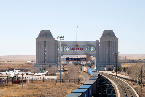 一列中歐班列經(jīng)過(guò)滿洲里國(guó)門。果乃輪 攝