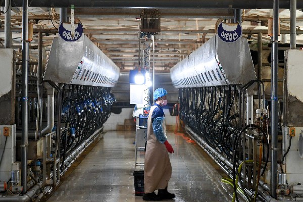 這是1月19日拍攝的巴彥淖爾市臨河區(qū)東鑫奶牛養(yǎng)殖專業(yè)合作社擠奶車間。