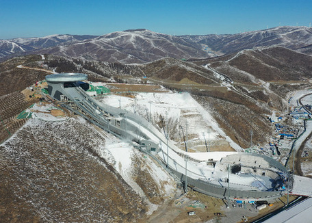 國家跳臺滑雪中心是北京冬奧會張家口賽區(qū)工程量最大、技術(shù)難度最高的競賽場館。(記者 楊世堯 攝)