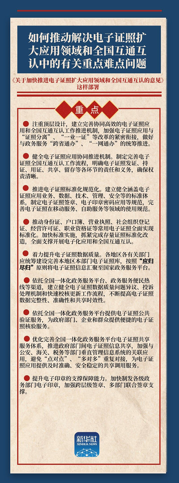 中國(guó)電子技術(shù)標(biāo)準(zhǔn)化研究院副院長(zhǎng)孫文龍說,《意見》不僅列舉任務(wù)目標(biāo),更把基礎(chǔ)保障、公共服務(wù)措施作為重點(diǎn)任務(wù)加以明確;不光提要求,還給出支持路徑,這樣將擴(kuò)大電子證照應(yīng)用和讓互通互認(rèn)更容易落地。