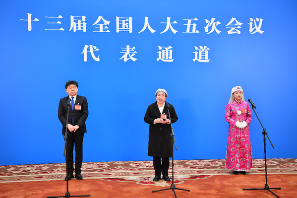 3月5日,第十三屆全國人民代表大會第五次會議舉行首場“代表通道”采訪活動。這是全國人大代表通過網(wǎng)絡(luò)視頻方式接受采訪。新華社記者 李鑫 攝