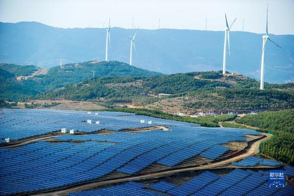 這是貴州省威寧縣平箐光伏電站和大海子風(fēng)電場(2018年3月13日攝)。新華社記者 楊文斌 攝