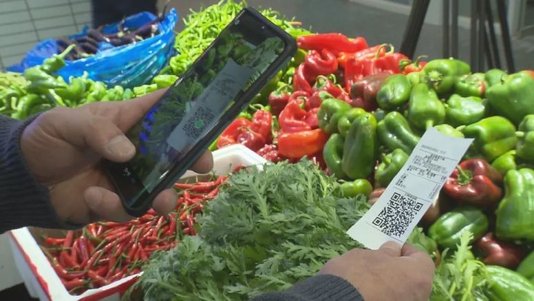 值得關(guān)注的是,在完成每次交易后,每個攤位的智能秤都會吐出一張收銀條,上面不僅有交易明細,還有一個二維碼,掃一掃即可完成每件商品的溯源,而墻上這臺實時滾動的電子屏也能讓菜場、攤販和顧客對于各類購物信息和數(shù)據(jù)一目了然。