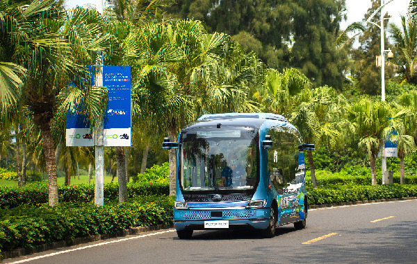 在博鰲亞洲論壇國(guó)際會(huì)議中心周邊投入試運(yùn)營(yíng)的新能源自動(dòng)駕駛小巴(4月16日攝)。