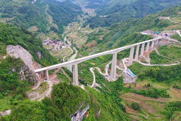 這是建設(shè)中的貴南高鐵桐子園雙線特大橋(無人機(jī)照片)。5月16日,在位于貴州省貴定縣境內(nèi)的貴南高鐵建設(shè)施工現(xiàn)場,中鐵廣州局建設(shè)者們正加緊施工,為貴南高鐵早日建成通車而努力。貴南高鐵是我國“八縱八橫”高速鐵路主通道包頭至海口通道的重要組成部分,設(shè)計(jì)時速350公里。