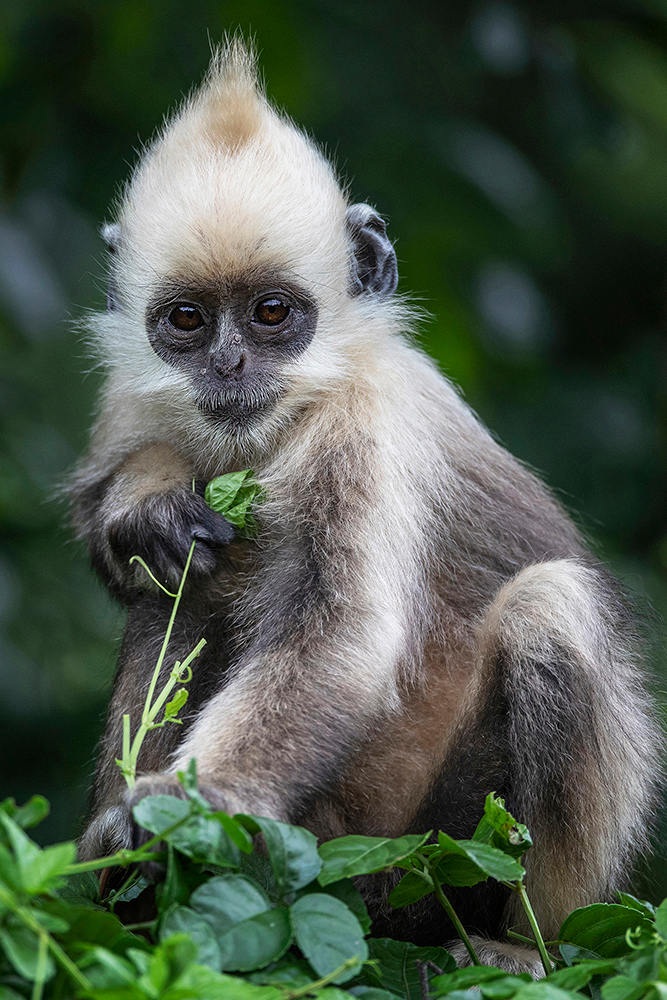 之所以叫“白頭葉猴”,是因?yàn)樗鼈兊念^部有一撮高聳的白色毛冠,且主要以樹葉為食。