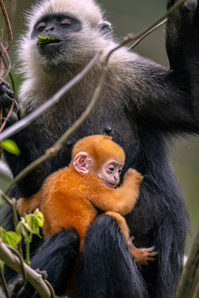 它們以猴群為社會(huì)基本結(jié)構(gòu),新生的白頭葉猴全身呈金黃色,之后逐漸長成白頭、白肩、長尾巴的模樣。