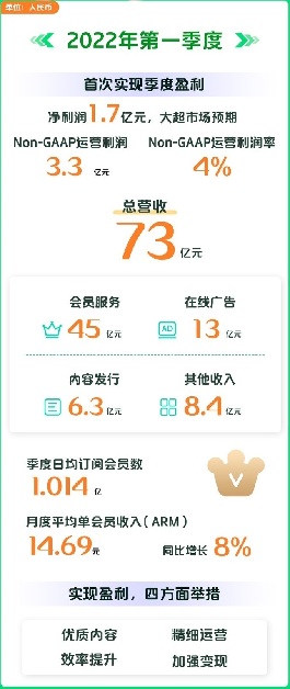 財報顯示,正是一季度《人世間》《心居》《獵罪圖鑒》《對手》《一年一度喜劇大賽》這樣的全民爆款,鞏固了愛奇藝的市場領(lǐng)先地位,帶來會員規(guī)模和月度平均單會員收入(ARM)增長;同時,進(jìn)一步提升的運營效率、銷售能力以及給用戶優(yōu)質(zhì)的服務(wù),讓愛奇藝的首次盈利水到渠成。