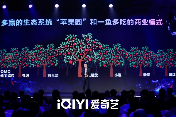 ▲2021年5月,龔宇在愛奇藝世界·大會介紹多贏生態(tài)系統(tǒng)和“一魚多吃”商業(yè)模式