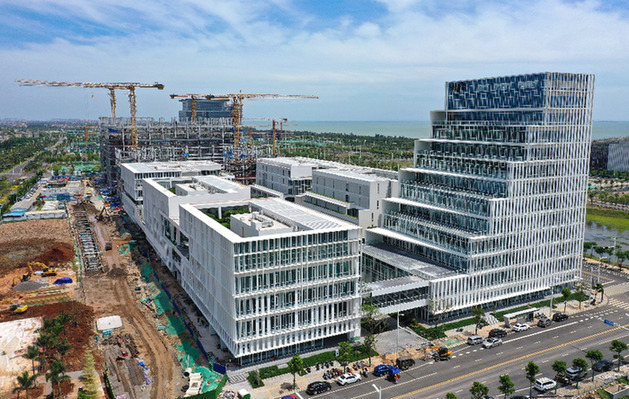 ??诮瓥|新區(qū)是海南自貿港重點園區(qū)之一,2020年6月正式掛牌。目前已引入重點企業(yè)183家,其中世界500強35家??偛拷洕鷧^(qū)在建的14個項目中,已有7個項目實現(xiàn)主體結構封頂。新華社記者 郭程 攝