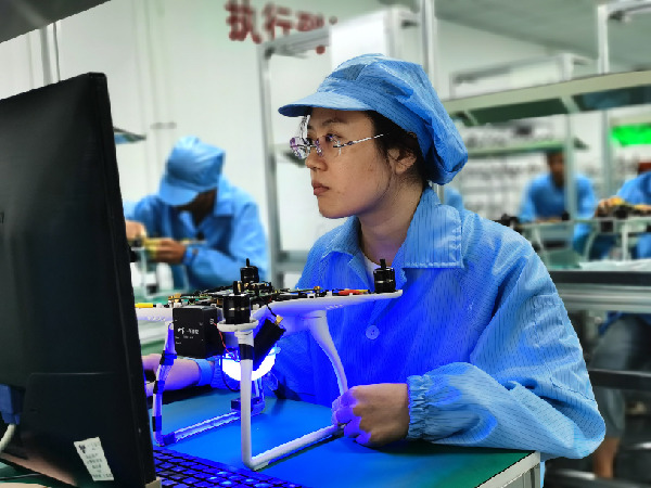 一飛智控(天津)科技有限公司工作人員正在組裝調(diào)試無人機(jī)。
