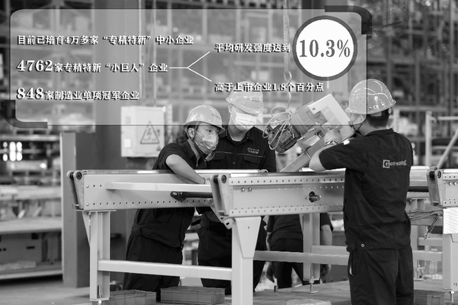 整體來看,工信部數(shù)據(jù)顯示,“小巨人”企業(yè)的平均研發(fā)強(qiáng)度達(dá)到10.3%,高于上市企業(yè)1.8個(gè)百分點(diǎn)。