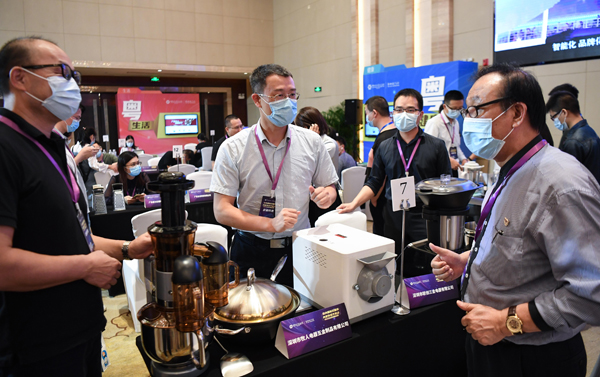 在網(wǎng)上廣交會(huì)的線下雙循環(huán)貿(mào)易促進(jìn)活動(dòng)上,企業(yè)代表和采購代表洽談業(yè)務(wù)(資料照片)