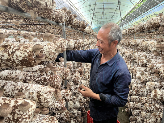 道真縣立足成渝需求打造“菜縣菇鄉(xiāng)”,食用菌已占據(jù)重慶70%市場。圖為道真縣洛龍鎮(zhèn)五一村村民陳敏在自己承包的食用菌大棚里忙碌。新華社記者 李驚亞 攝