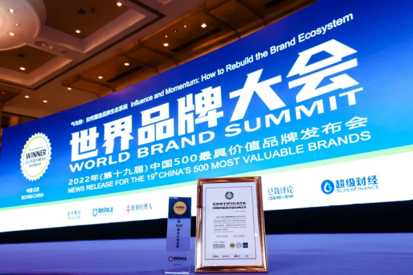 7月26日,2022年(第十九屆)世界品牌大會(huì)暨中國(guó)500最具價(jià)值品牌發(fā)布會(huì)在北京隆重舉行。國(guó)際權(quán)威品牌評(píng)審機(jī)構(gòu)——世界品牌實(shí)驗(yàn)室(World Brand Lab)發(fā)布了2022年“中國(guó)500最具價(jià)值品牌”排行榜。