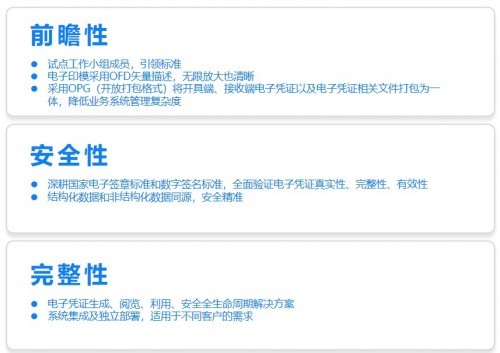 馮輝介紹,百望云電子憑證一體化解決方案,前瞻性地支持OPG(OpenPackage),將開具端和接收端的電子憑證打包到OPG中,降低業(yè)務(wù)系統(tǒng)復(fù)雜性;兼容試點(diǎn)中所有電子憑證憑證類型,滿足財(cái)政部2022年6號(hào)文試點(diǎn)要求;覆蓋電子憑證從生成、閱覽到再利用的全生命周期。