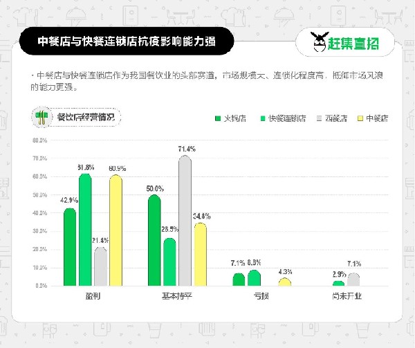 來源標(biāo)題:趕集直招發(fā)布《餐飲商家經(jīng)營狀況調(diào)研報(bào)告》:中餐店與快餐連鎖店受疫情影響更小