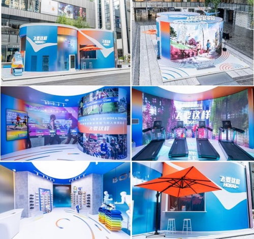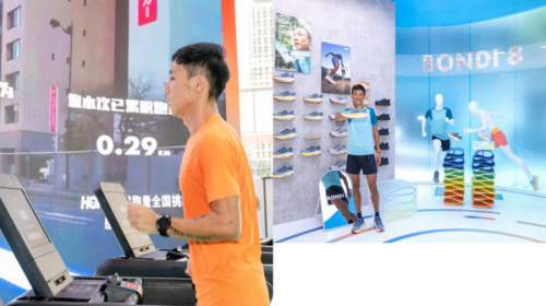 飛常跑量能量站以HOKA全新迭代之作Bondi 8為設計靈感,由半透明LED曲面屏打造開放式布局,頂部的發(fā)光燈帶勾勒出數字8的俯瞰效果,搭配極富沖擊力的醒目配色,為整個快閃店營造出充滿活力的運動感。入口處打造了品牌溯源墻,讓跑者們跟隨HOKA的腳步奔赴山野,在勃朗峰的映襯下,感受誕生于山脈的HOKA對長距離耐力運動的堅守,領略戶外運動的無窮魅力。店內設置了飛常跑量挑戰(zhàn)區(qū)及Bondi系列鞋款試穿區(qū),跑者們可以在巨型曲面屏營造的路跑風光中,盡情感受Bondi 8韌性緩震的飛凡腳感,享受身臨其境般的戶外奔跑體驗,并可通過掃描現場二維碼,將個人跑量實時匯入HOKA飛常跑量全國挑戰(zhàn)能量池。此外,現場還設有飛常跑量補給站,參與挑戰(zhàn)即有機會獲取HOKA運動T恤和能量特飲,釋放跑者專屬夏日活力。為與更多在地跑者締結更加深層次的聯結,HOKA深圳萬象天地直營體驗店也將持續(xù)打造多元跑者社群體驗服務,以豐富的跑團活動滿足跑者由身至心的所有需求。