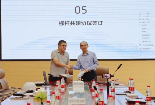 最后,新國展二期項目經(jīng)理焦勇與廣聯(lián)達副總裁劉曉棟代表雙方公司正式簽署了共育·標桿共建協(xié)議。