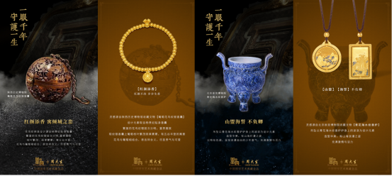 隨著民族文化自信高揚(yáng),東方美學(xué)消費(fèi)力量不斷崛起,從故宮到敦煌,以中國傳統(tǒng)文化為核心的“國潮”在品牌營銷領(lǐng)域展示著迷人風(fēng)采,這意味著“文創(chuàng)IP的國潮時(shí)尚”已蔚然成風(fēng)。在此形勢(shì)下,周大生與《國家寶藏》強(qiáng)強(qiáng)聯(lián)合,重磅打造“中國國寶藝術(shù)典藏金品”,并根據(jù)消費(fèi)者對(duì)黃金首飾消費(fèi)的個(gè)性化需求,以一曰“國”、二曰“家”、三曰“藏”為情景風(fēng)格設(shè)定,打造“國韻”、“家慶”以及“藏器”三大系列主題的時(shí)尚古法黃金產(chǎn)品,通過現(xiàn)代珠寶藝術(shù)讓國人更好的“傾聽和讀懂”千年的國寶文化,同時(shí)也為新一代消費(fèi)者提供更多富有旗幟性文化標(biāo)識(shí)和情感內(nèi)涵的時(shí)尚潮搭首飾。