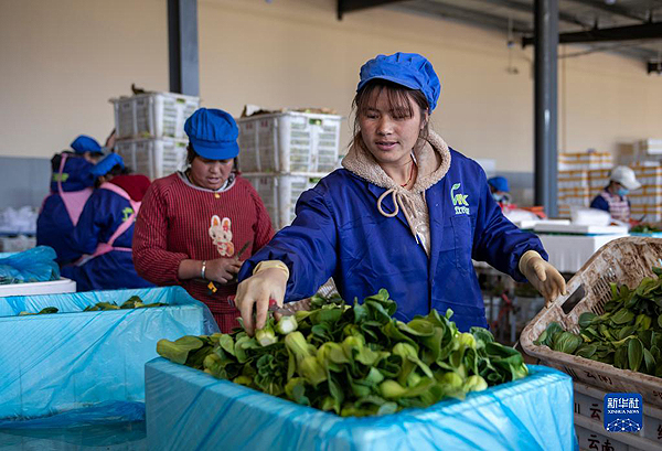 脫貧群眾在云南省曲靖市會澤縣一蔬菜冷鏈企業(yè)分揀蔬菜(2022年3月3日攝)。新華社記者 陳欣波 攝