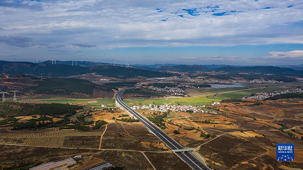 這是2021年通車的云南三清高速一景(2022年1月15日攝,無人機(jī)照片)。新華社記者 胡超 攝