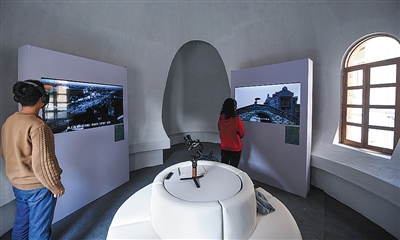 游客在杭州市余杭區(qū)瓶窯鎮(zhèn)的特制“窯洞電影院”內(nèi)觀看電影短片。新華社記者 徐昱 攝