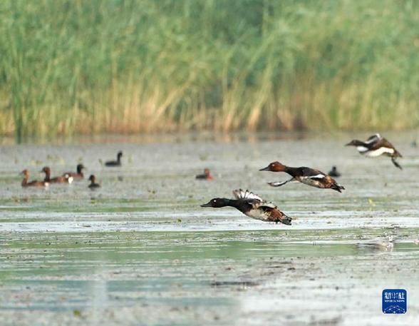 夏日的白洋淀,碧波蕩漾,荷紅葦綠。遼闊的水面上,一群活潑可愛(ài)的青頭潛鴨幼鳥(niǎo)跟隨“父母”在蘆葦叢中穿梭。這意味著,世界極度瀕危物種青頭潛鴨將白洋淀作為了繁殖地。