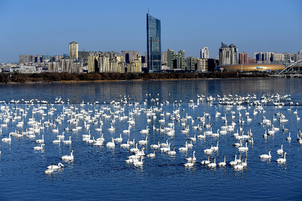 得益于生態(tài)的改善,當(dāng)?shù)靥禊Z數(shù)量從1988年首次發(fā)現(xiàn)的12只增加到去年的15300多只,使三門峽成為全球聞名的“天鵝之城”。