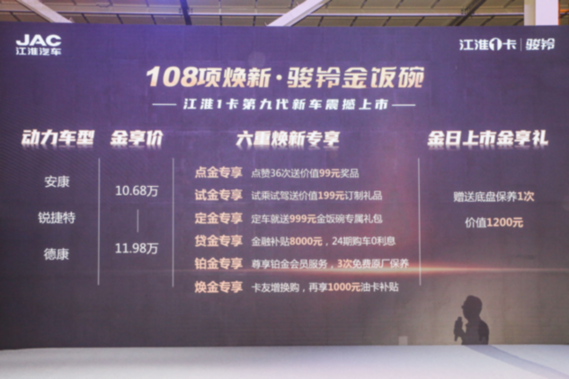 108項(xiàng)煥新 江淮1卡第九代新車駿鈴金飯碗震撼上市